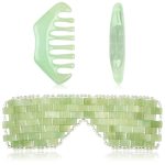 2 Pcs Jade Eye Mask and Hair Comb Set Green Jade Stone Eye Mask White Facial Cooling Set Guasha Scalp Comb Facial Massage Tool for Relax Alleviate Puffiness Esthetician Supply (Classic Color)
